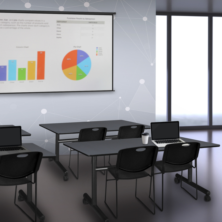 • HomeStock Handmade Home 30" Flip Top Mobile Training Table in Grey with 2 Black Zeng Stack Chairs for Durable and Stylish Training or Meeting Environments image - 1