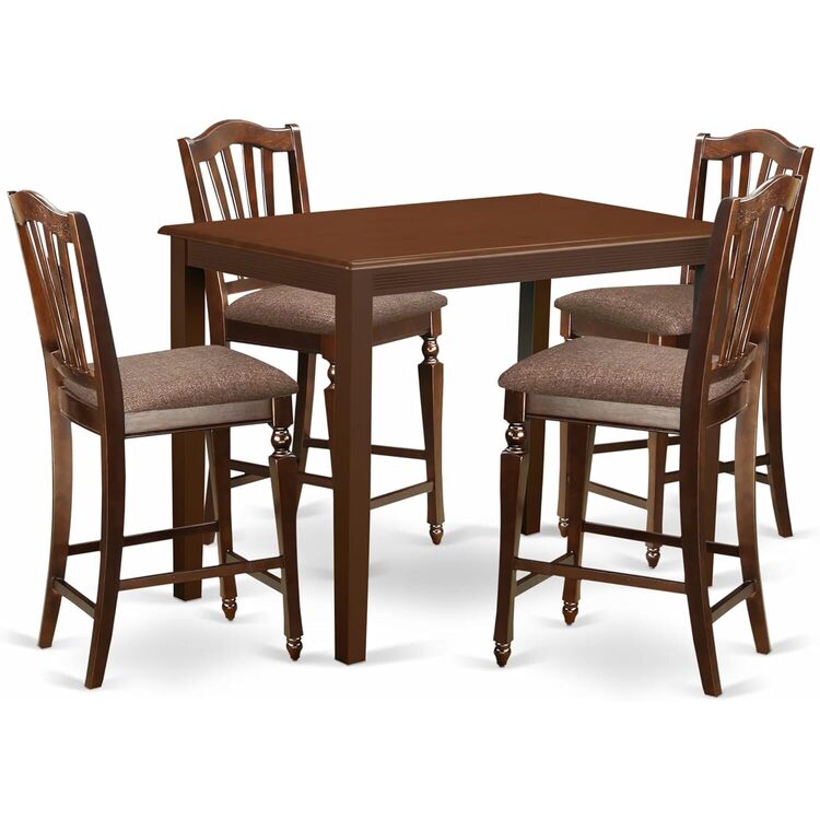 • HomeStock 5-Piece Counter Height Dining Set, Mahogany Finish, Rectangular Table with 4 Microfiber Seat Bar Stools, 127 lbs image - 1