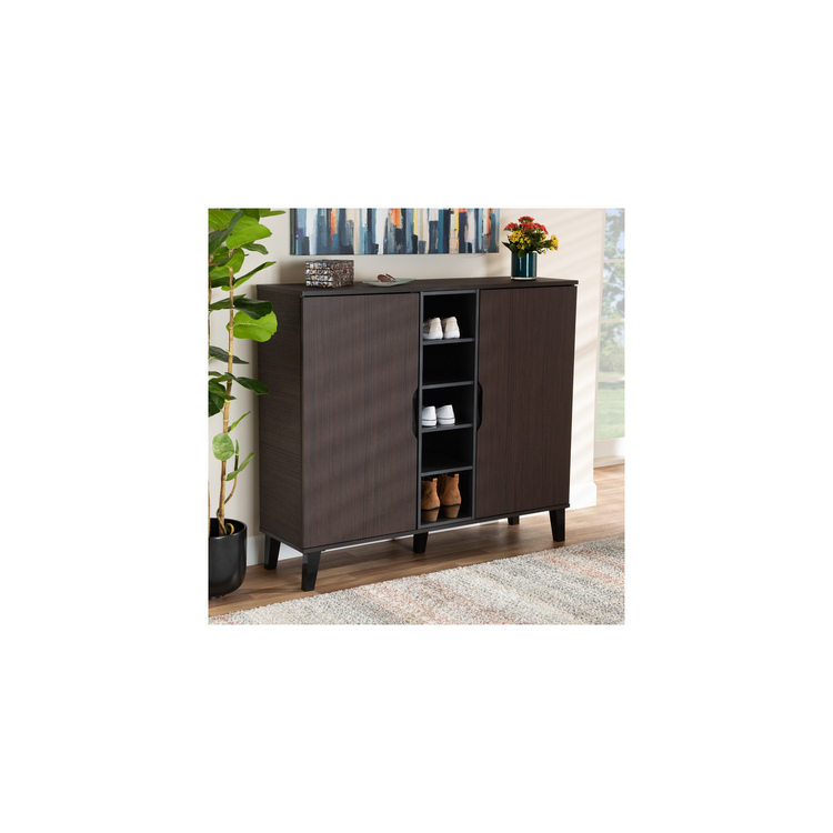 • HomeStock African Adventure Mid-Century Modern Two-Tone Dark Brown and Grey Finished Wood 2-Door Shoe Cabinet, Hallways or Entryway Shoe Storage Cabinet image - 1