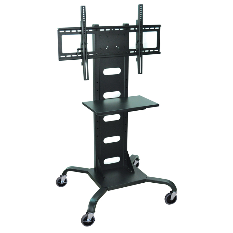 • HomeStock Island Oasis Mobile TV Stand - 31.5-InW, Adjustable A/V Shelf, 37-In-60-In Display Mount, Tilt Function, Cable Management, Locking Casters, Black Steel Frame image - 1