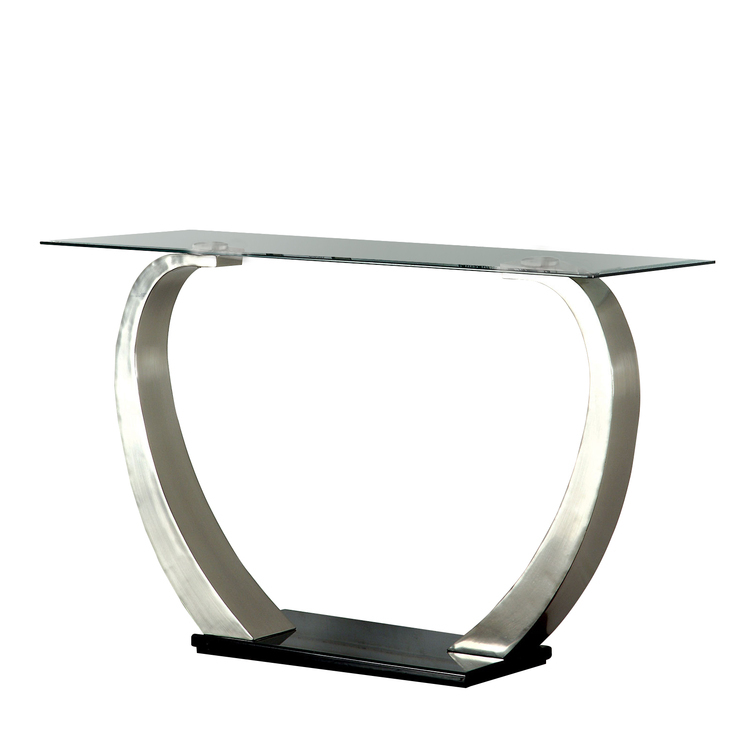 • HomeStock Lakefront Luxury 48" x 18" x 30.25" Glass Top Sofa Table Black and Gray Curved Pedestal Base Beveled Tempered Glass Dual Tone Finish Elegant Design image - 1