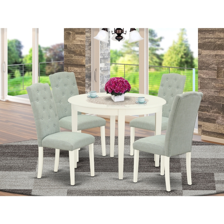 5-Piece Round Dinette Set - Small Kitchen Table & 4 Chairs - Linen White & Baby Blue