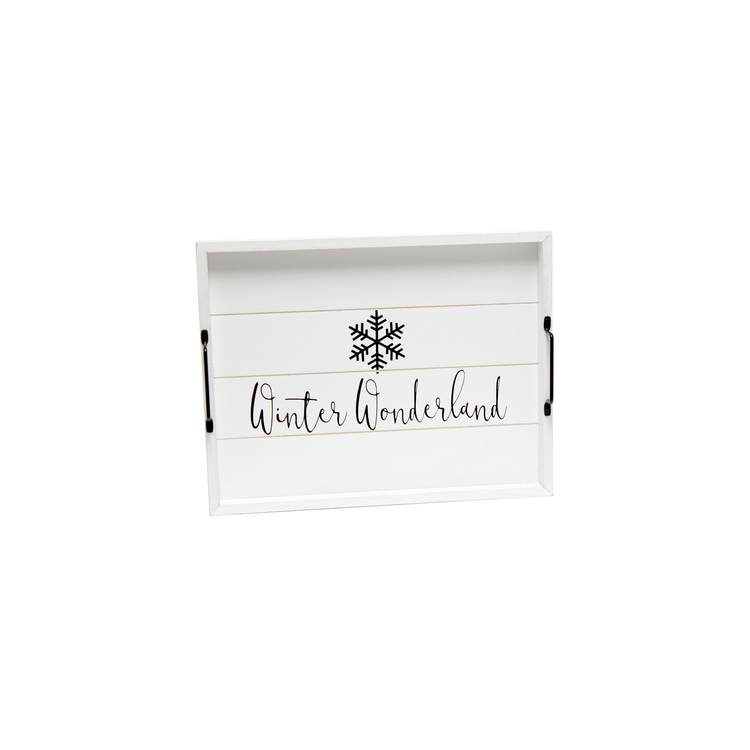 • Decorative Wood Tray with Handles - 15.5" Serving Tray - White Wash Finish - Winter Wonderland Design image - 1