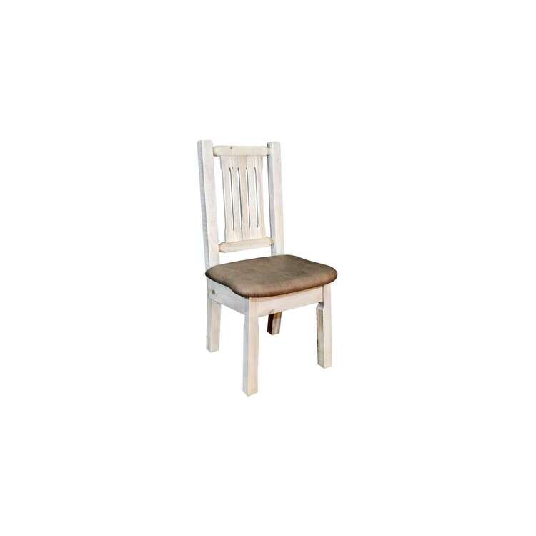 • Pole Pine Dining Chair - Upholstered Buckskin Seat - Durable Lodge Style - 350 lb Capacity image - 1