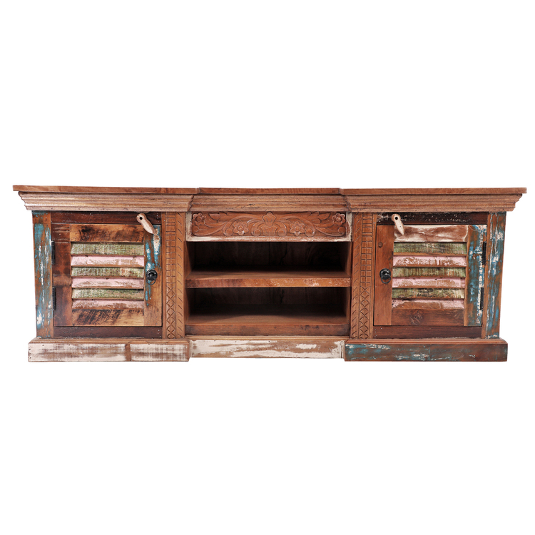 • Antique TV Cabinet Solid Wood Media Console Storage Organizer image - 1