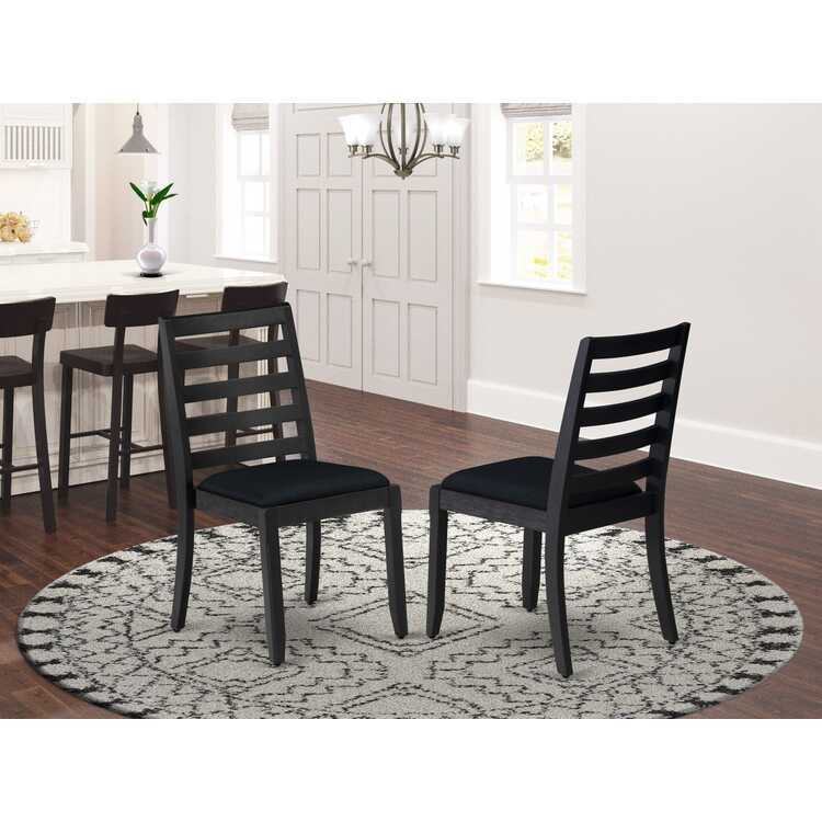 • HomeStock Medieval Moods Dining Room Chair in Wire Brushed Black with Upholstered Back and Black Linen Fabric for Luxe Comfort in a Timeless Look image - 1