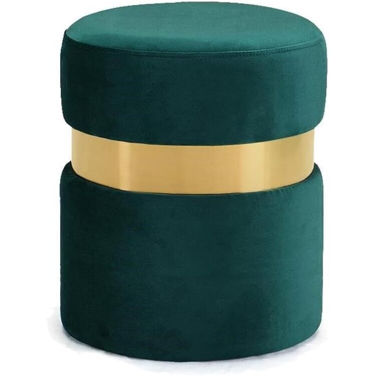 • Velvet Ottoman Stool with Steel Band - Modern Home Accent Seating 14.5" x 14.5" x 17.5" image - 1
