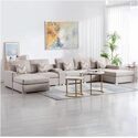 • Homestock Modern Minimalism Linen Fabric 6Pc Double Chaise Sectional Sofa with Interchangeable Legs, a USB, Charging Ports, Cupholders, Storage Console Table and Pillows image - 1