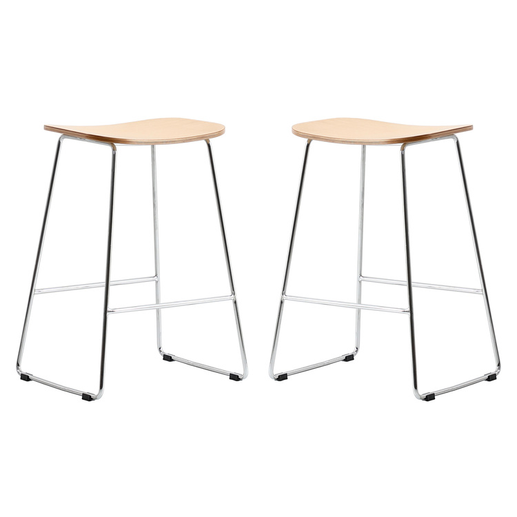 HomeStock Eclectic Elegance Modern Wood Counter Stool With Chrome FrameSet of 2