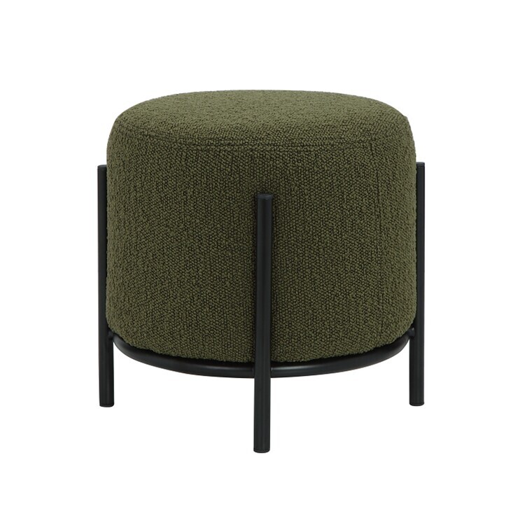 • Round Boucle Ottoman Stool - Green Upholstery & Black Metal Frame - 13" Diameter image - 1