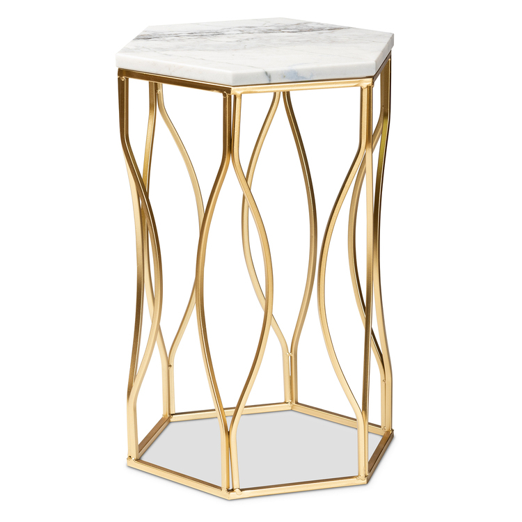 • Metal & Marble End Table - Hexagon Accent Table with Openwork Frame image - 1