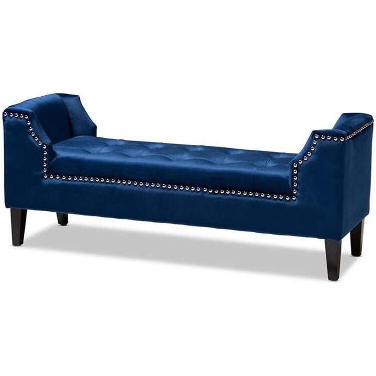 • Royal Blue Velvet Bench, Upholstered Wood Entryway Bench with Nailhead Trim image - 1