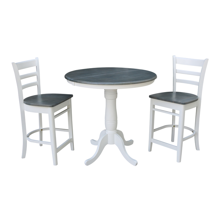 • HomeStock Naturally Nice 36" Round Counter Height Table With 2 Stools, Butcher Block Top Expands To 48", 35.3" Tall Pedestal, Dual Finish Parawood 3 Piece Set image - 1