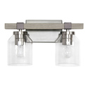 • 2 Light Vanity Fixture - Country Gray & Brushed Nickel Metal Wall Mount Light - Clear Glass Shades for Bath, Hallway image - 1