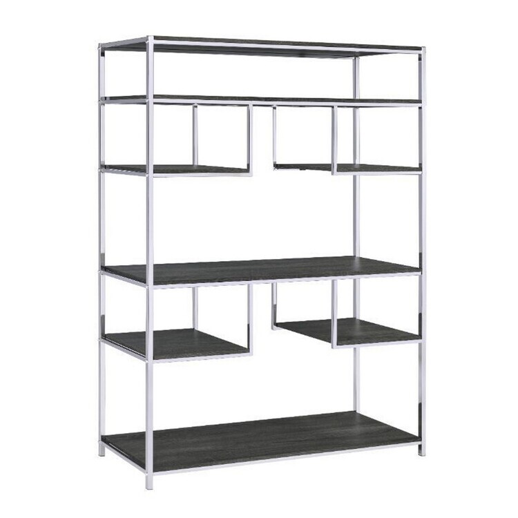 • HomeStock Nordic Haven 49" W x 16" L x 72" H Silver and Dark Gray Metal Frame Bookshelf Featuring Seven Shelves with Modern Geometric Patterned Design image - 1
