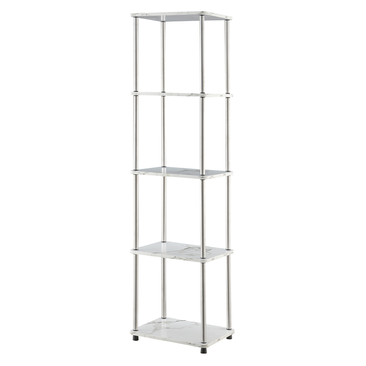 • HomeStock Nordic Haven 5-Tier Tower Shelf, 15.75-In x 11.75-In x 63.25-In , Faux White Marble Finish, Sturdy Chrome Poles, Particleboard Build, Vertical Space Organizer image - 1