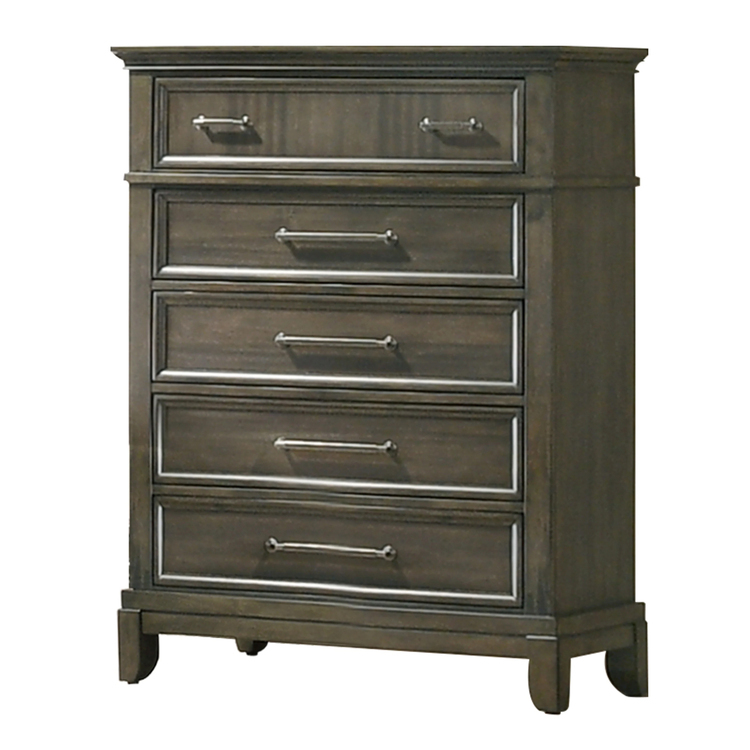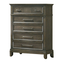 • HomeStock Old World Charm 17.75" x 37.25" x 49.25" Tall Dresser Chest with 5 Drawers Pewter Bar Handles and Crown Molding Gray Wood Finish image - 1