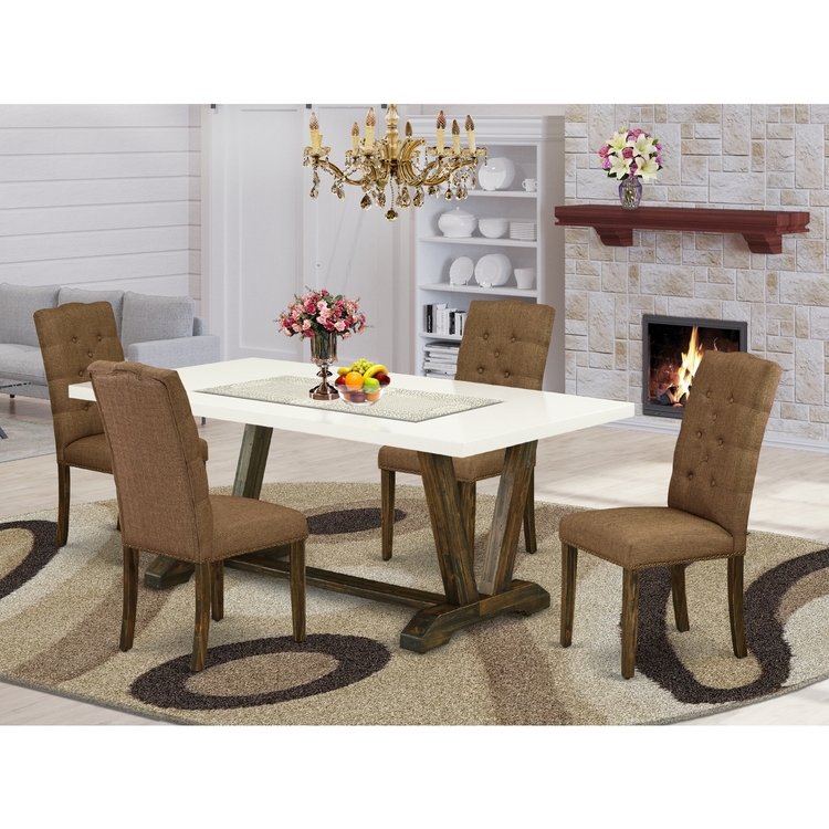 • Dining Room Table Set 5 Piece Modern Dinette Set with 4 Parson Chairs image - 1