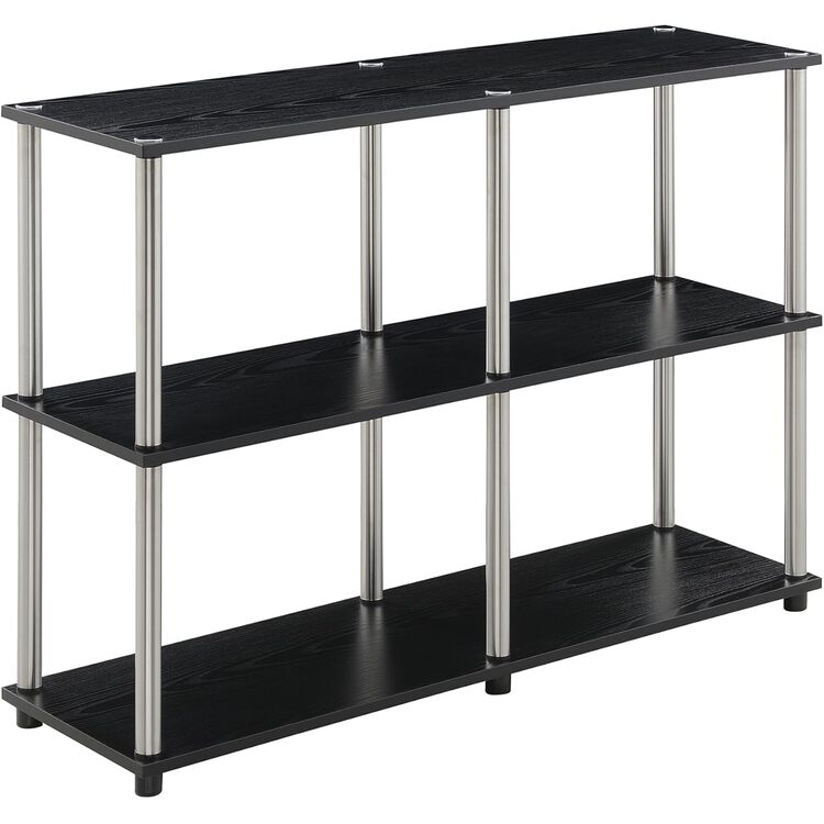 • HomeStock Old World Opulence Console Table with 3 Tiers, Sturdy Steel Legs, Rubber Floor Protectors, Black Finish, Elegant Storage & Display Solution image - 1