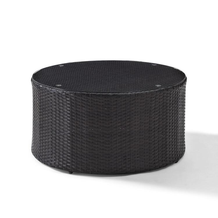 HomeStock Rustic Romance Outdoor Wicker Round Coffee Table Brown - 32"D x 32"W x 16.25"H, Powder Coated Finish, Round Shape, Outdoor Table with Base Leg