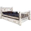 • HomeStock Renaissance Revival King Storage Bed 94"L x 80"W x 47"H with Laser Engraved Elk Design Clear Lacquer Finish Rustic Themed Solid Lodge Pole Pine Wood image - 1