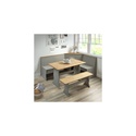 • Gray Corner Dining Booth - Solid Pine Table & Benches - Seats 5 - Wash Finish/Brown Tops image - 1