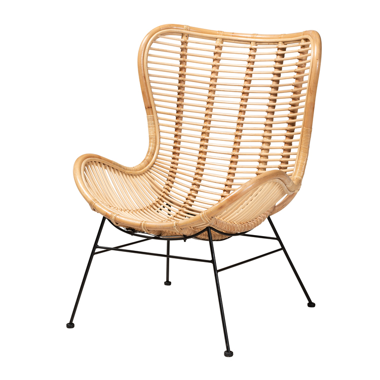 • Metal Accent Chair - Natural Brown & Black Rattan Seat - Handcrafted Openwork Frame image - 1