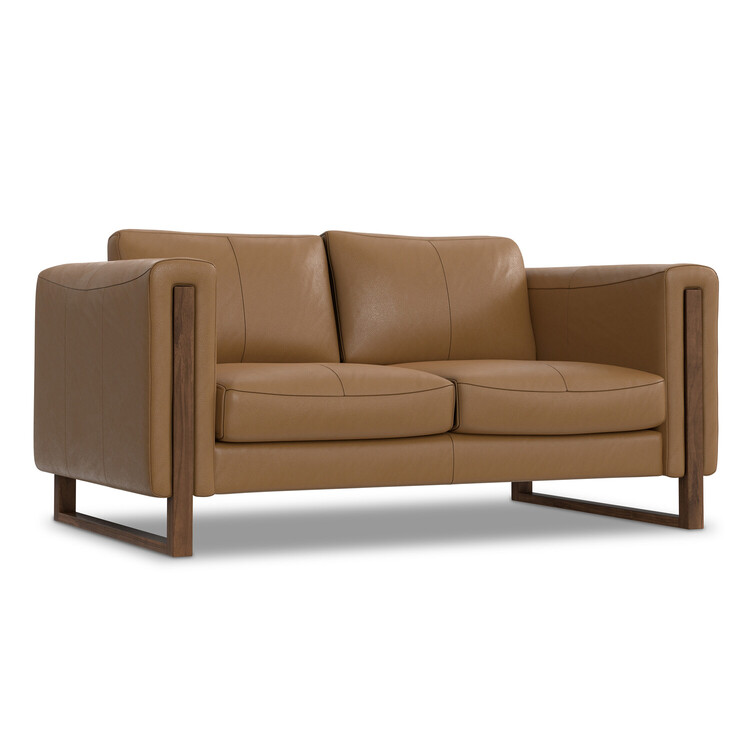 • HomeStock Renaissance Romance 62 In Wide Modern Sofa in Butternut Brown Genuine Leather, 62.25'' W x 38'' D x 30'' H, Removable Cushions for Easy Cleaning image - 1