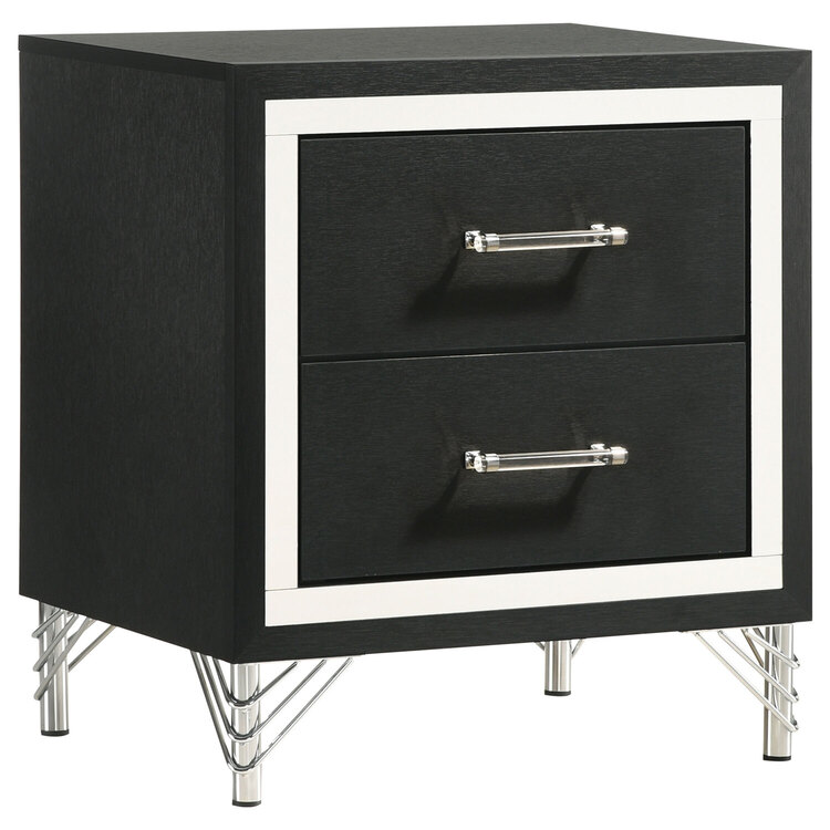 • Nightstand with 2 Drawers - Bedside Table - Black Finish image - 1