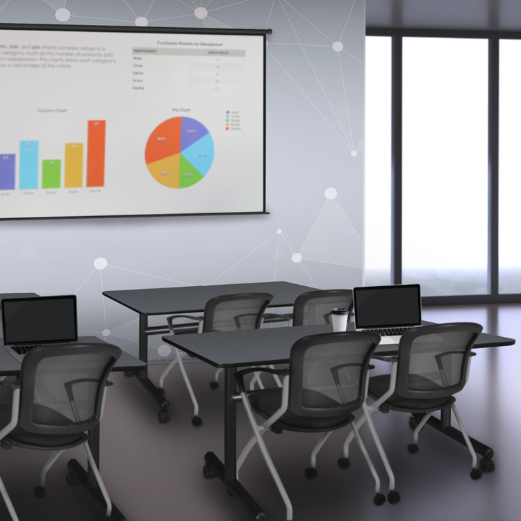 • HomeStock Retro Relaxation 30" Flip Top Mobile Training Table in Grey with 2 Cadence Nesting Chairs Contemporary Grey Table with Space-Saving Nesting Chairs image - 1