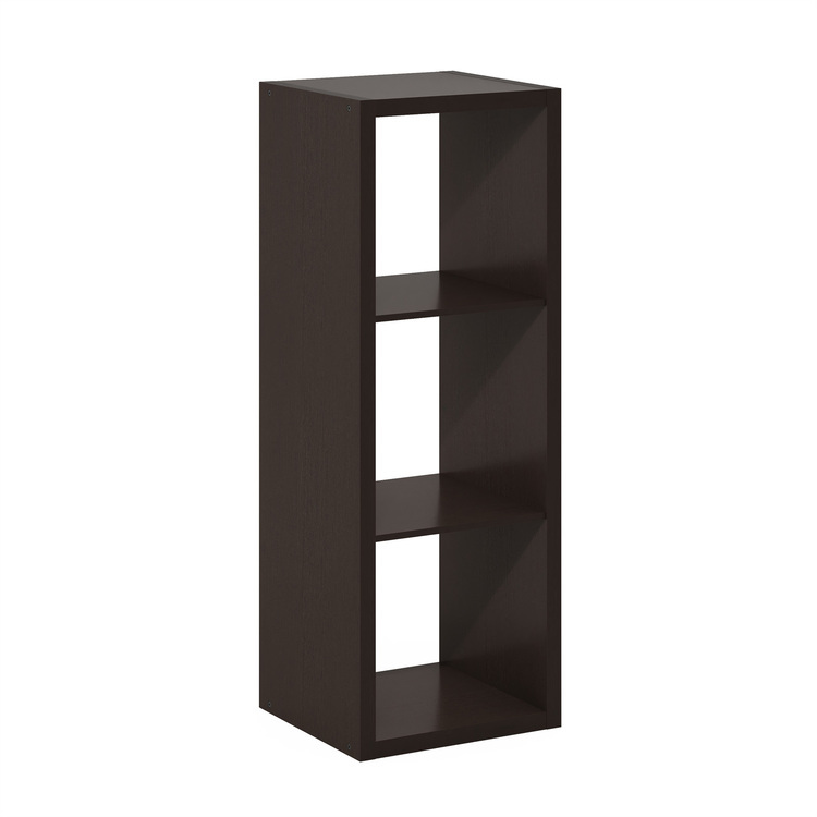 • HomeStock Retro Relaxation Open Back Decorative Cube Storage Organizer 3-Cube Dark Oak 14.57D x 15.87W x 43.98H Inches image - 1