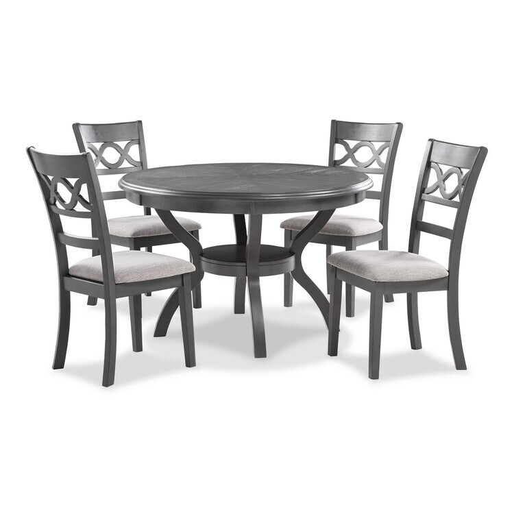• HomeStock Retro Renaissance 5 Piece 47" Round Dining Set with Gray Wood Table and White Fabric Chairs 47" x 47" x 30.25" image - 1
