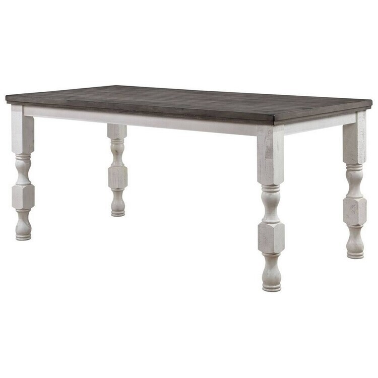 • HomeStock Retro Renaissance 79 Inch Counter Height Table with Rectangular Antique White Wood Frame, Gray Plank Style Top, and Turned Legs for Rustic Modern Charm image - 1