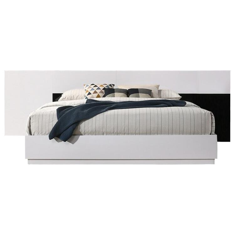 • HomeStock Farmhouse Fresh Black and White Platform Bed with Ultra-Wide Headboard, Cal King - Sophisticated Contemporary Style, Poplar Wood and Lacquer image - 1