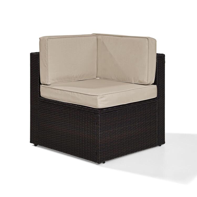 • HomeStock Outdoor Corner Chair - Brown Wicker & Sand Cushions - Patio Lawn Porch Seating image - 1