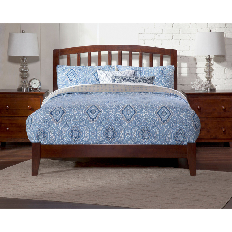 Homestock Retro Renaissance Platform Bed With Open Footboard And Turbo Charger In Classic Finish For Bedroom Spaces, Perfect Blend Of Sleek Bowed Style And Traditional Sturdy Slats