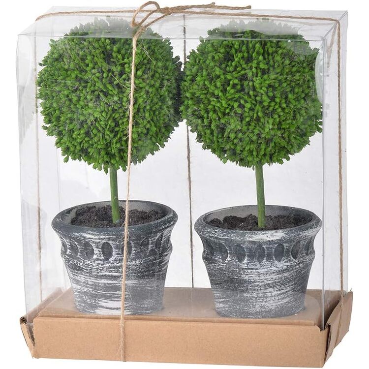 • HomeStock Rococo Radiance Mini Faux Topi in Black Pot Set of Two 4" D x 8" W x 9.5" H Elegant Boxwood Look with Lush Green Color, Ideal for Indoor Decor, No Assembly Required image - 1