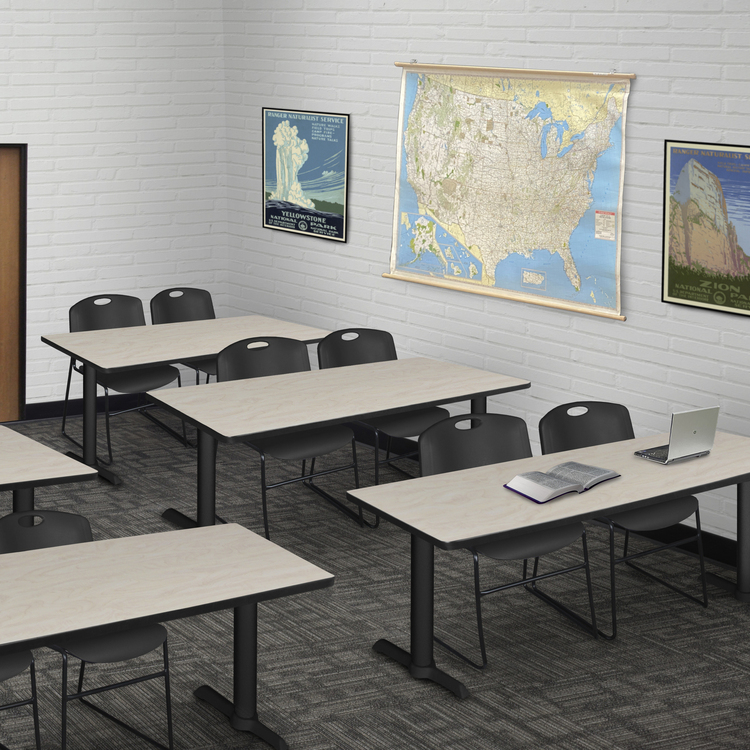• HomeStock Rustic Recluse 24" Maple Training Table with 2 Black Zeng Stack Chairs Provides Quiet Simplicity and Function for Personal Workstations image - 1