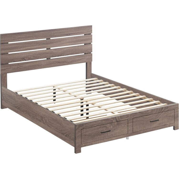 • King Storage Bed - Plank Headboard & Footboard Drawers - Barrel Oak image - 1