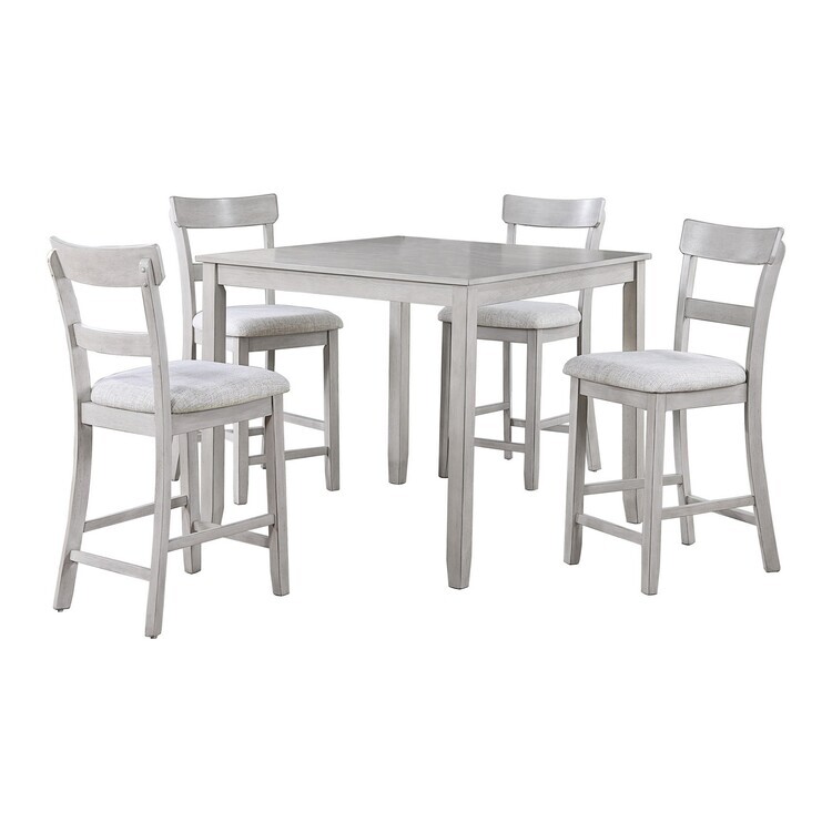 • HomeStock Rustic Romance 5 Piece Set Counter Height Dining Table, 4 Chairs with Gray Fabric Upholstery, Wood Construction, 42L x 42W x 36H Inches image - 1
