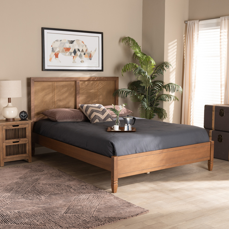 • HomeStock Seaside Serenity Mid-Century Modern Walnut Brown Finished Wood and Synthetic King Size Platform Bed image - 1