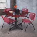 • HomeStock Seaside Serenity Square Breakroom Table in Mahogany with 4 Burgundy 'M' Stack Chairs Providing Coastal Elegance and Practical Seating Solutions image - 1