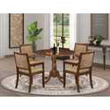 • HomeStock Sophisticated Simplicity 5 piece Dining Table Set included a Round Kitchen Table and 4 Brown Texture Faux Leather stackable Chair, Antique Walnut Finish. image - 1