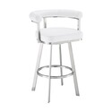 • HomeStock Southwestern Sanctuary 23.5 x 21.5 x 38 Inch White Faux Leather Swivel Barstool Chair with Barrel Open Back and Chrome Steel Frame image - 1