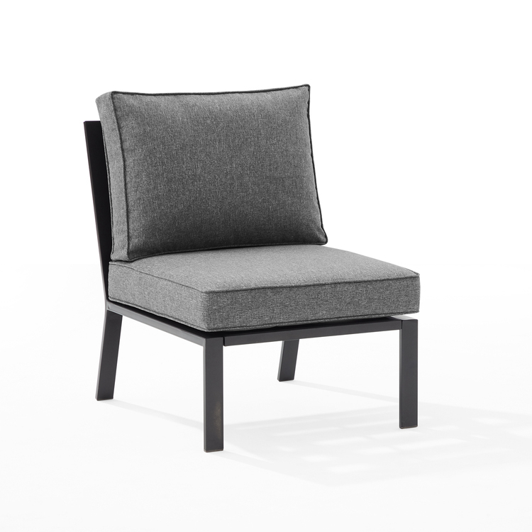 • Outdoor Metal Sectional Chair - Patio Armless Chair - Black Frame & Charcoal Cushions image - 1