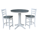 • HomeStock Southwestern Style 36" Round Extension Dining Table With 2 Counter Height Stools, Solid Wood Butcher Block Top, Dual-Toned Finish, Pedestal Base with 6" Extension, Expands from 36" to 48" image - 1