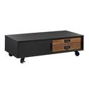 • HomeStock Southwestern Style Modern Coffee Table - 46"L x 21.9"W x 13.5"H - Hidden Storage, Cubbyhole Design, Locking Casters, Black Finish with Oak Accents image - 1