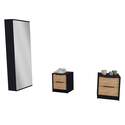 • HomeStock Suburban Soiree 3 Piece 8.1" x 8.1" x 54.3" Bedroom Set with Full Mirror Door Shoe Rack and 2 Matching Nightstands in Black and Pine Color image - 1