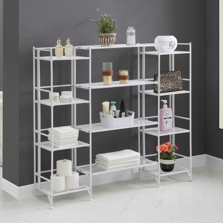• HomeStock Suburban Sophistication 4-Tier Folding Metal Shelves with 4 Extension Shelves, Durable Powder-Coated Frame, Adjustable Feet, Easy Storage Solution image - 1