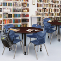 • HomeStock Suburban Sophistication 48" Round Height Adjustable Mobile Classroom Table in Mahogany Elegant Traditional Finish Meets Modern Functionality image - 1